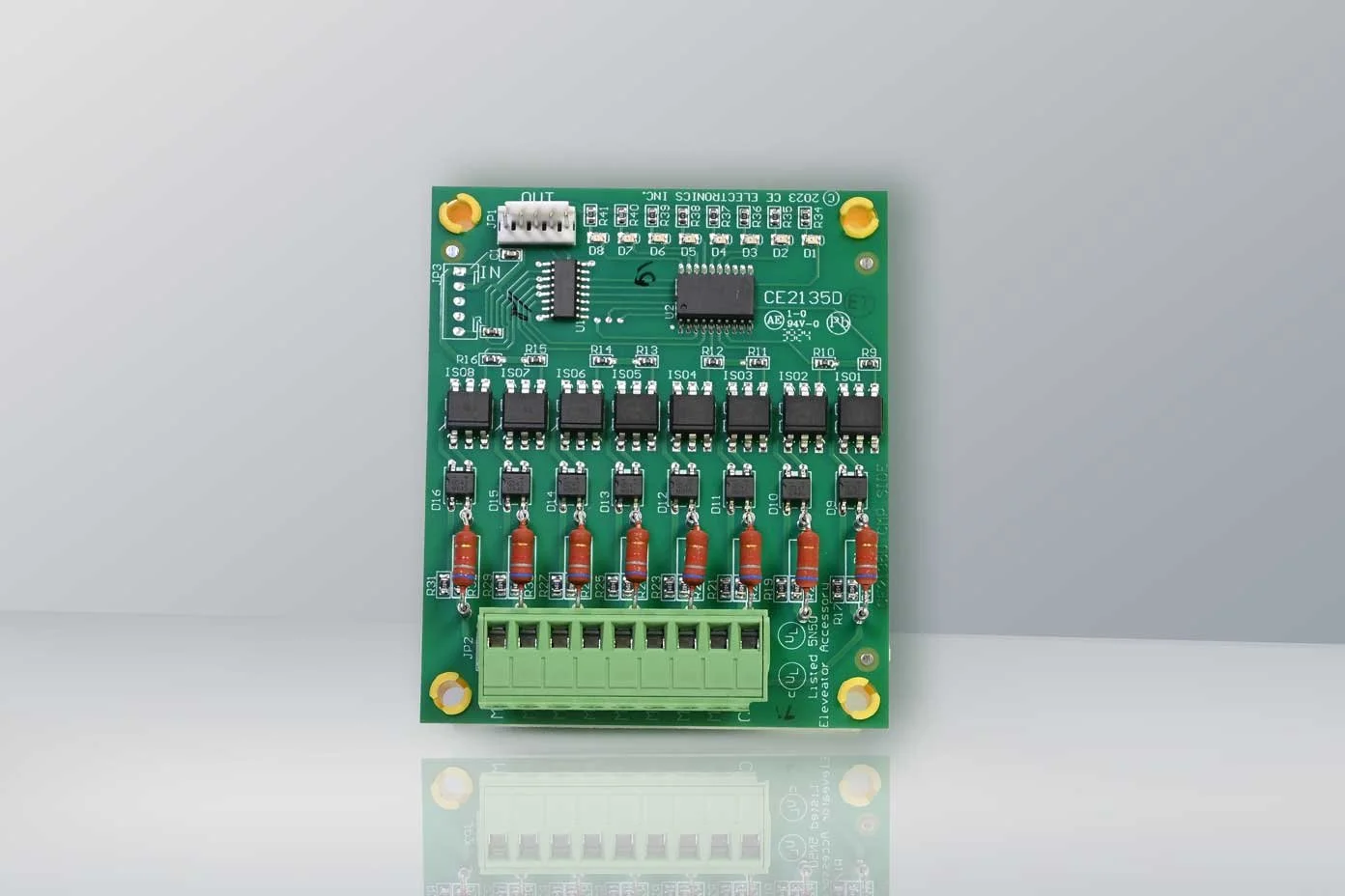 The alternate message module was designed to be used in conjunction with the MICRO COMM controller and the Voice Module. The message module provides you with 8 prioritized messages that when used with the MICRO COMM controller would alternate with the floor indication. An example would be an emergency stop. “ES” would then alternate with the appropriate floor designation. These indications are helpful when trying to diagnose a problem of non-movement of your elevators.